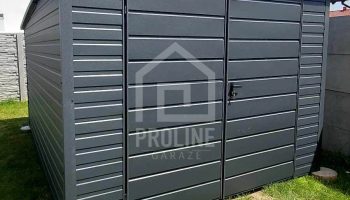Schowek – domek ogrodowy 3,5×4,5m – brama dwuskrzydłowa – antracyt – dach spad w tył PLG149