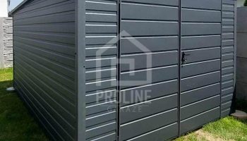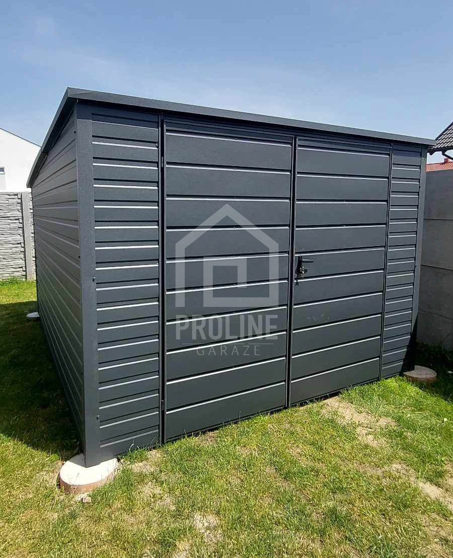 / Schowek – domek ogrodowy 3,5×4,5m – brama dwuskrzydłowa – antracyt – dach spad w tył PLG149