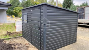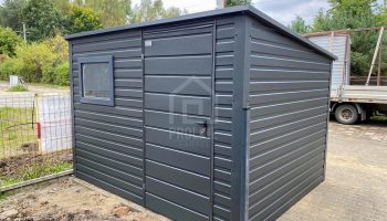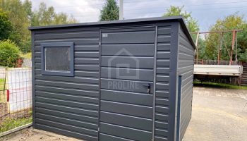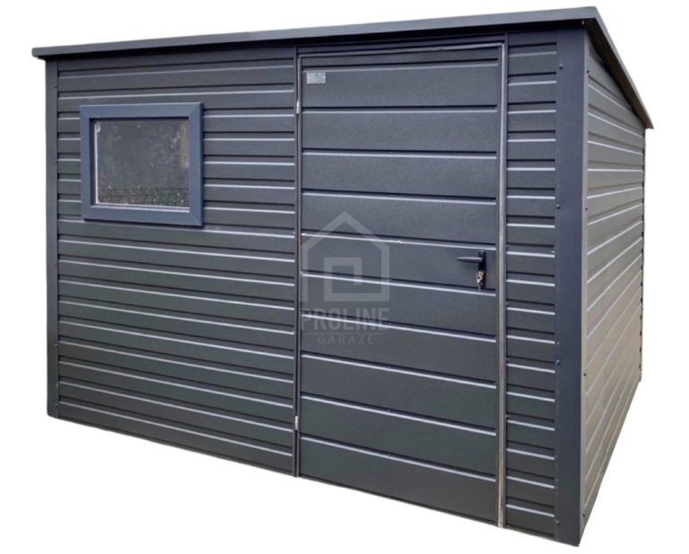 Schowek – domek ogrodowy 2,8×2 – drzwi – okno – antracyt – dach spad w tył PLG246