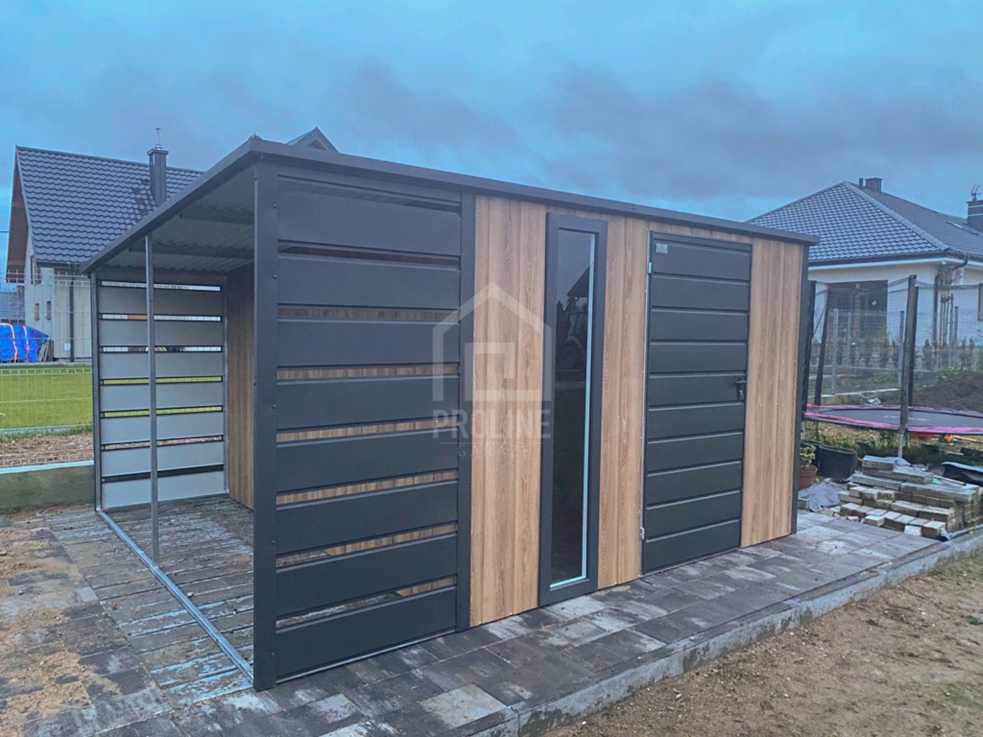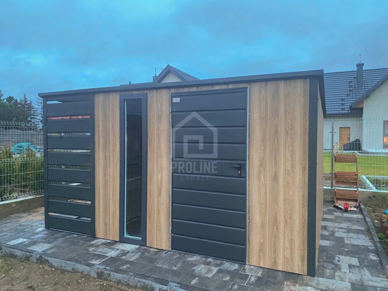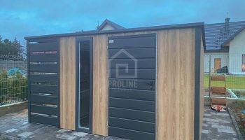 • wiata : 1×3 m zabudowana panelami z przodu i z tyłu kolor : antracyt mat 7016