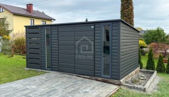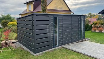 • wiata : 1×2,5 m zabudowana panelami z przodu, z tyłu i z boku kolor : antracyt mat 7016