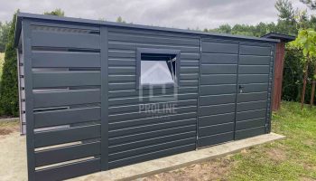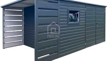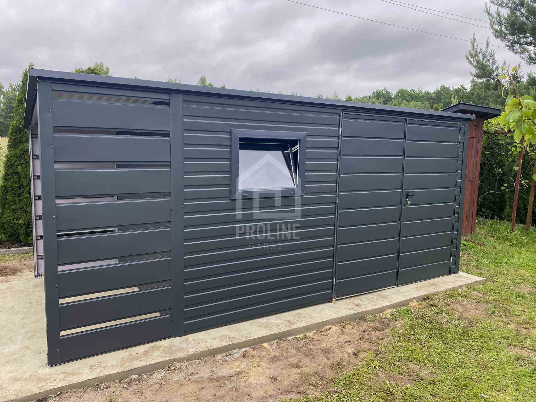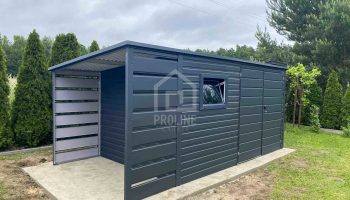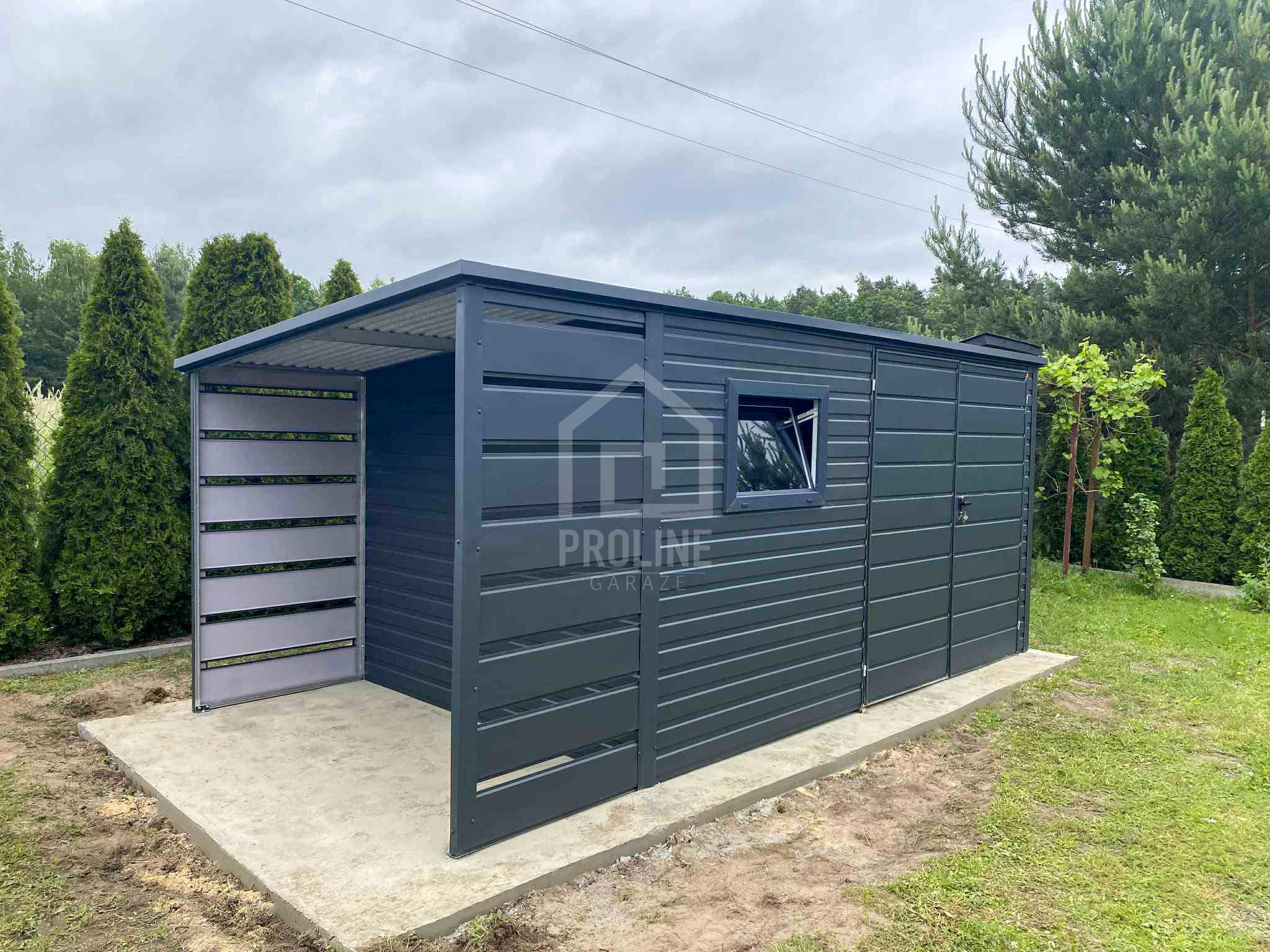 Schowek – Domek Ogrodowy 4×2,5 – wiata 1×2,5 – brama – okno – antracyt – dach spad w tył PLG164