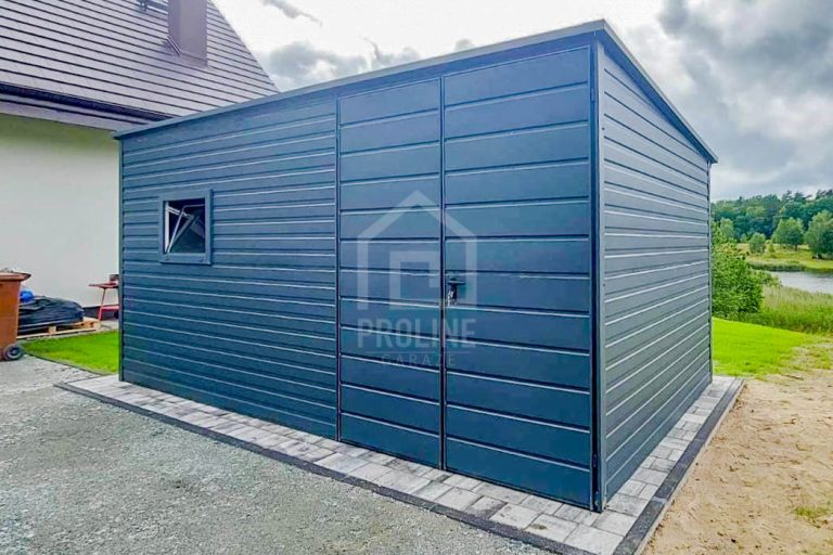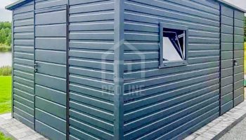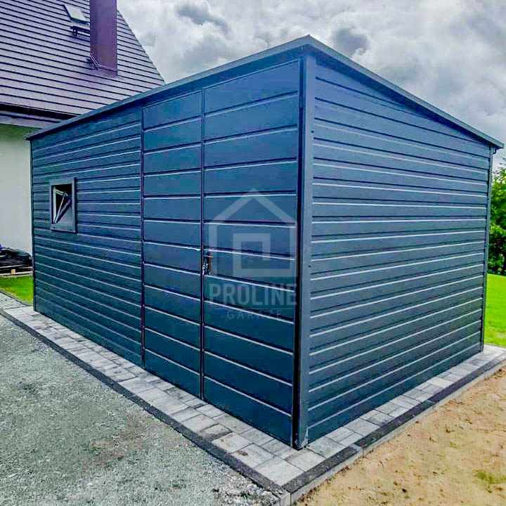 / Schowek – Domek Ogrodowy 4×2,5m Brama Dwuskrzydłowa – Drzwi – Okno – Antracyt – Dach spad w tył PLG156