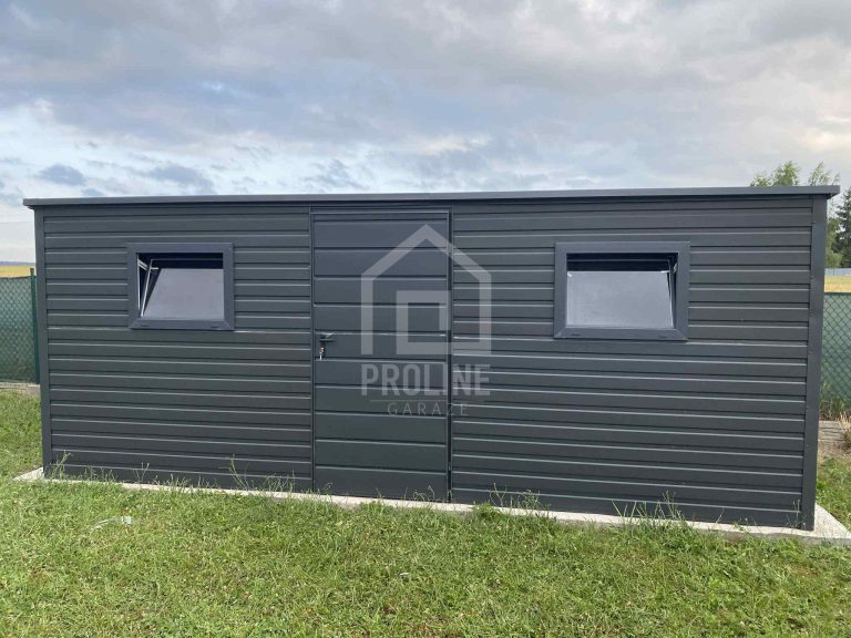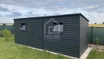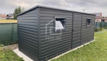 / Schowek – Domek Ogrodowy 5,5x2m – drzwi – 2x okno – antracyt – dach spad w tył PLG192