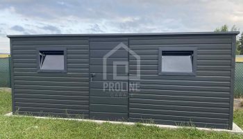 Schowek – Domek Ogrodowy 5,5x2m – drzwi – 2x okno – antracyt – dach spad w tył PLG192