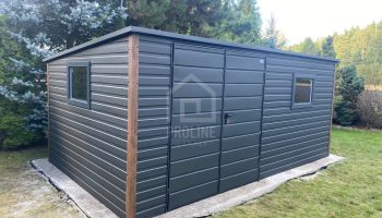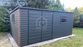 Schowek – domek ogrodowy 5x3m – brama dwuskrzydłowa – 2x okno – antracyt – dach spad w tył PLG223