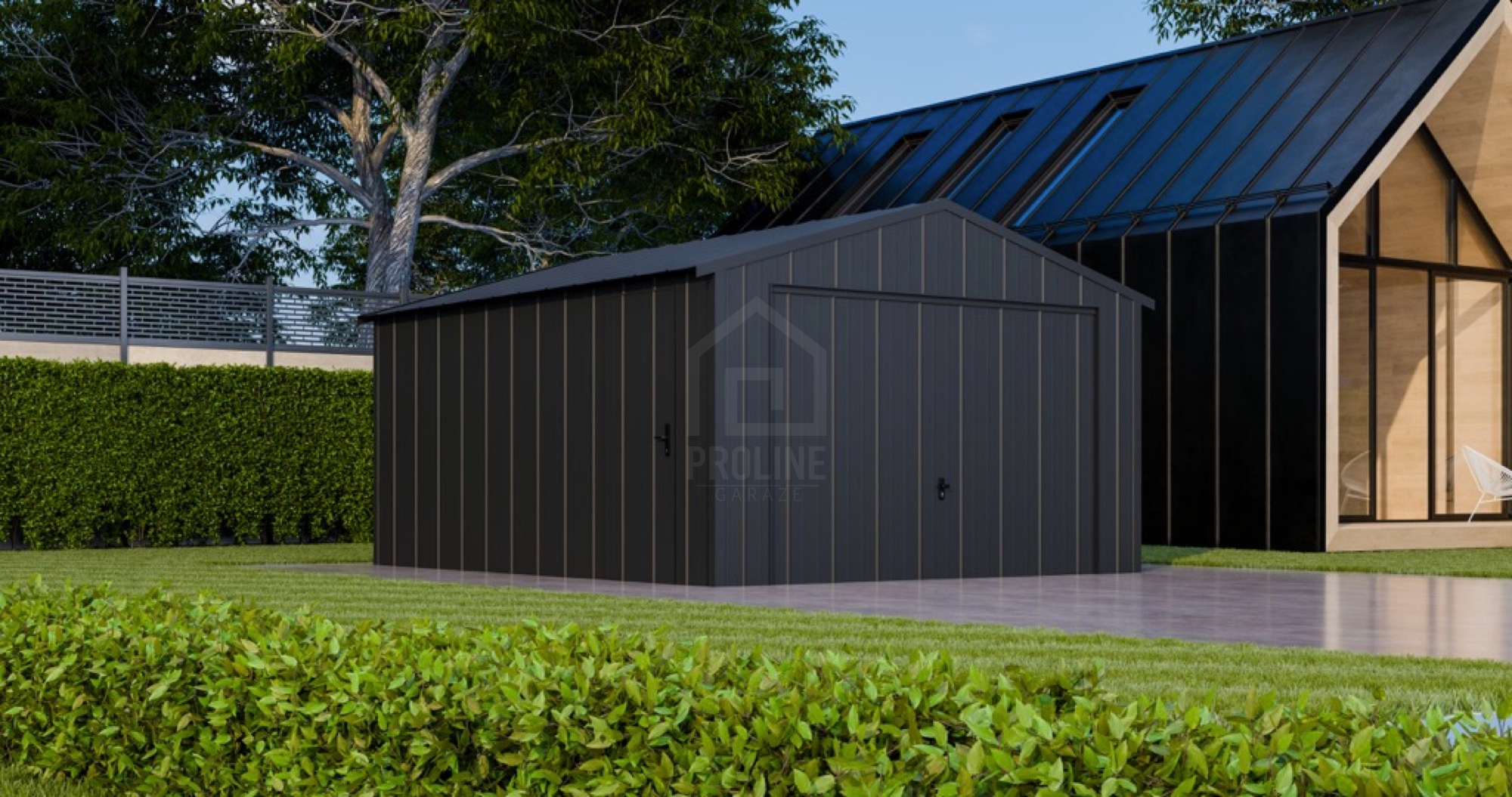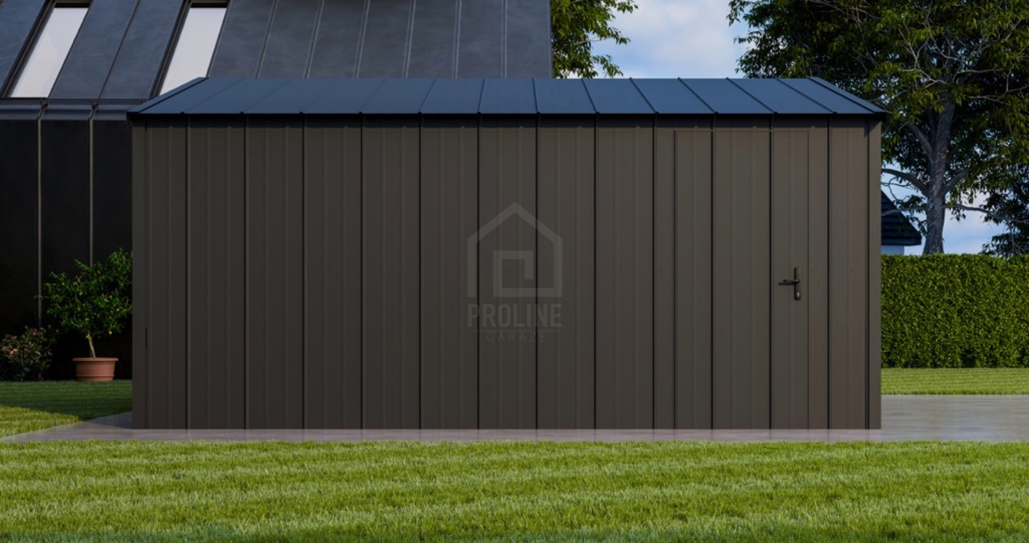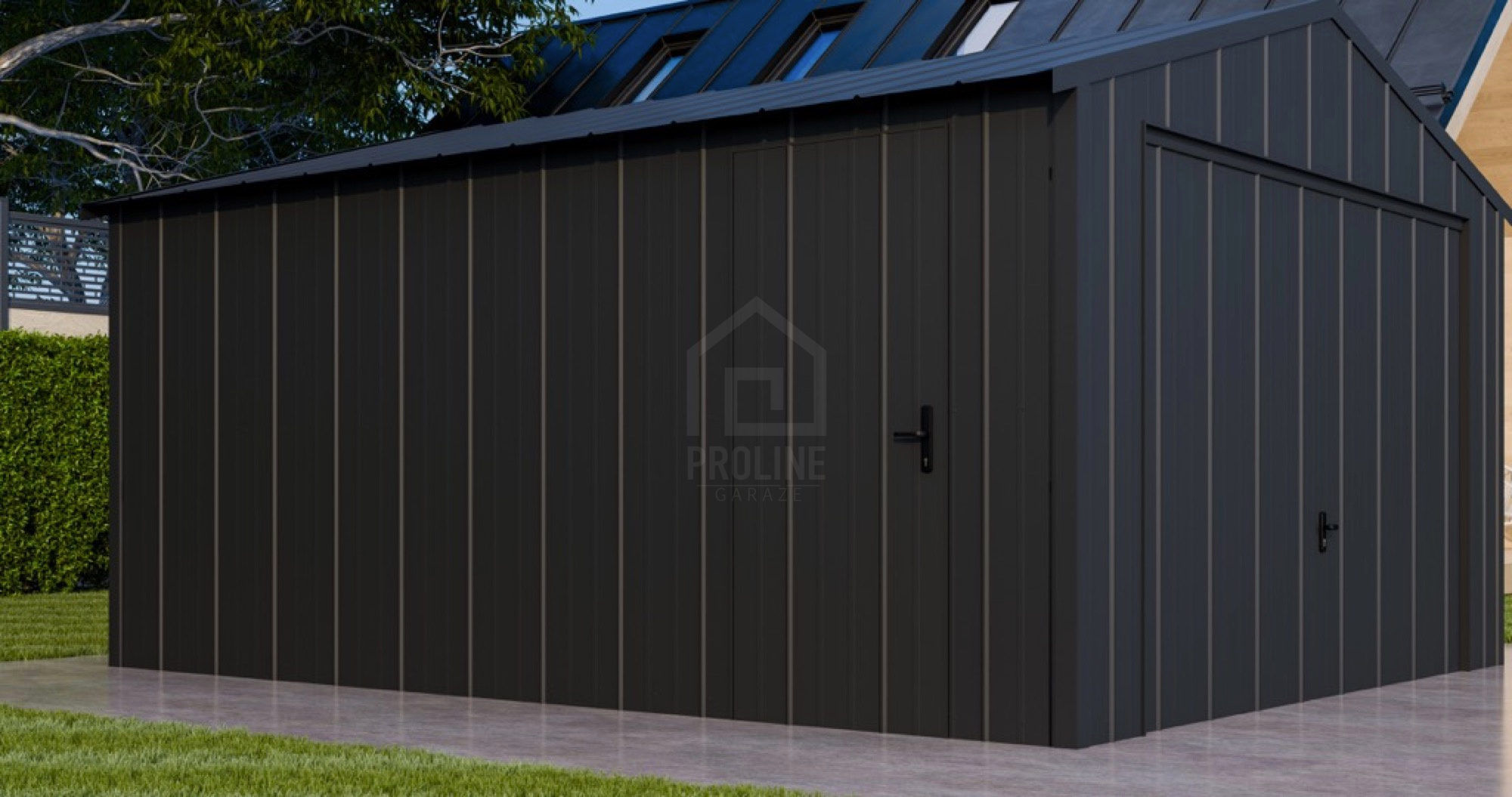 • dach: dwuspadowy, pokryty blachą na rąbek, kolor: antracyt mat 7016
