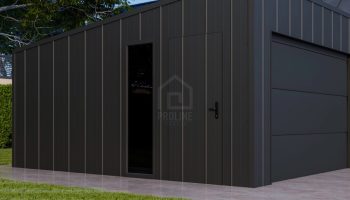 • dach: spad w tył, pokryty blachą na rąbek, kolor: antracyt mat 7016