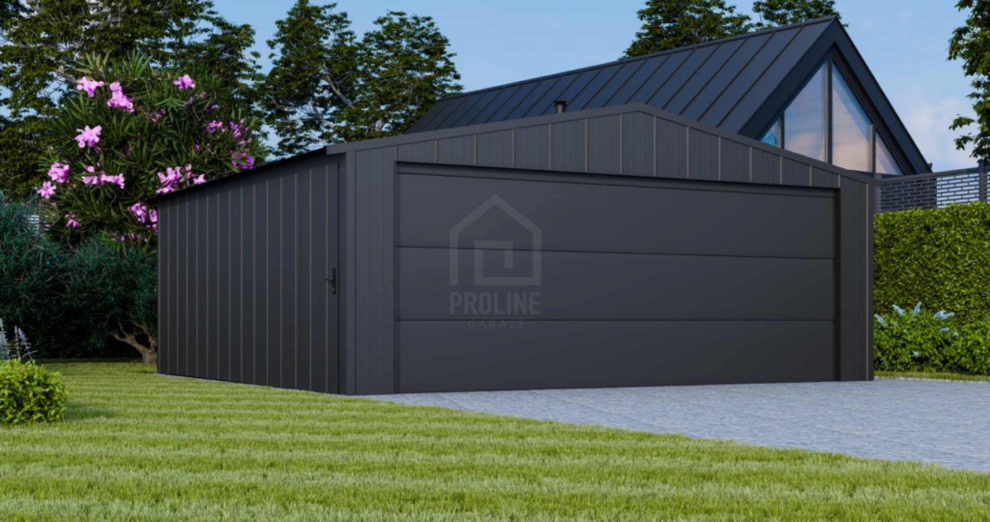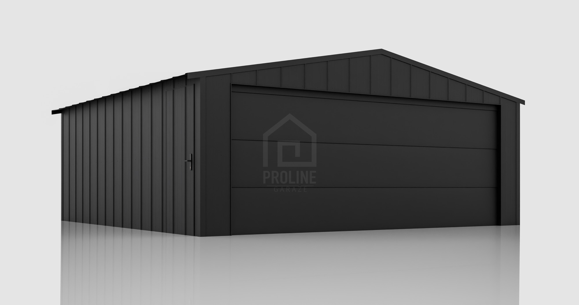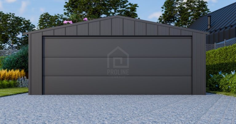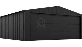 Garaż blaszany 6x5m – brama segmentowa – drzwi – blacha na rąbek – dach dwuspadowy PLG214