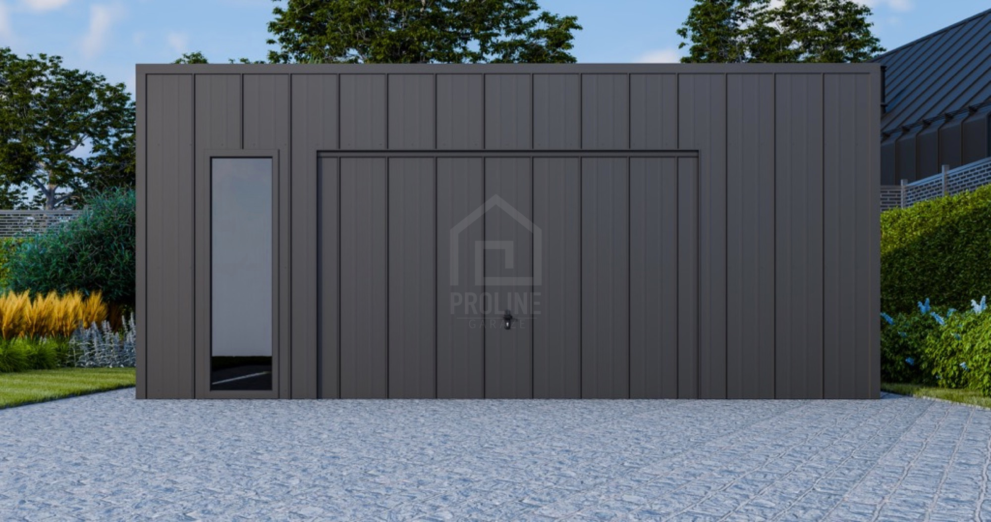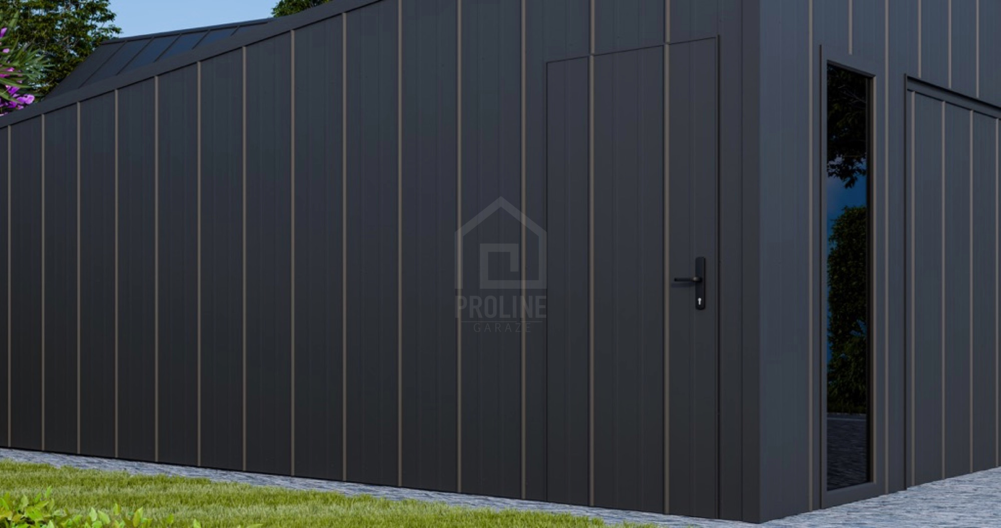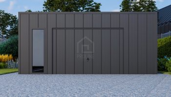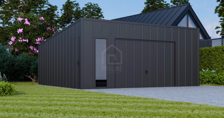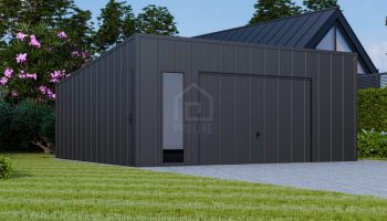 • dach: spad w tył, pokryty blachą na rąbek, kolor: antracyt mat 7016