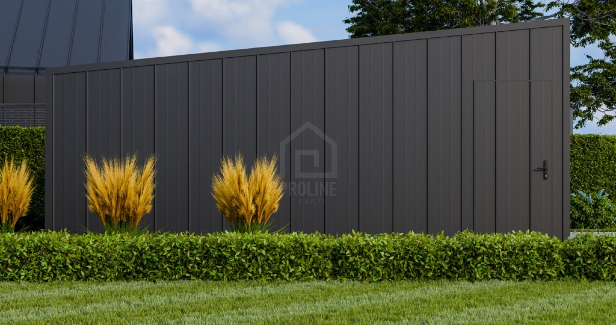 • ściany z blachy na rąbek, kolor: antracyt mat 7016