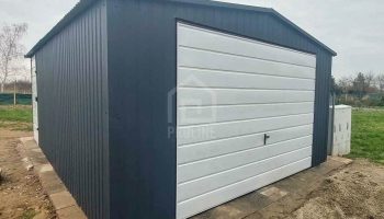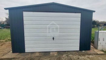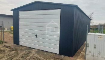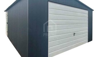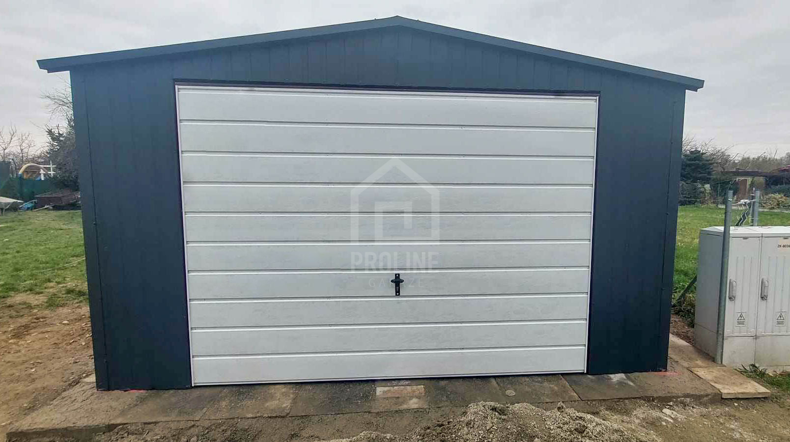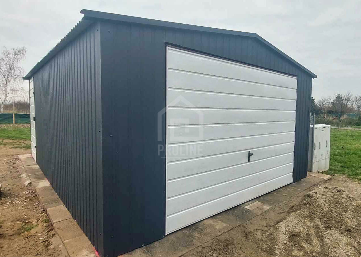 / Garaż blaszany 4,5x5m – brama uchylna – antracyt – biały – dach dwuspadowy PLG251