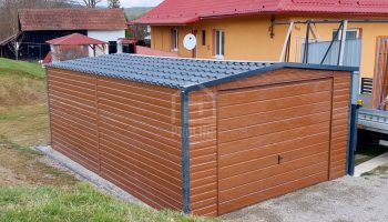Garaż Blaszany 4X6 – Dwuspad – Blachodachówka – Brama Uchylna – Drzwi – Okno – Drewnopodobny PLG225