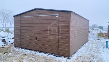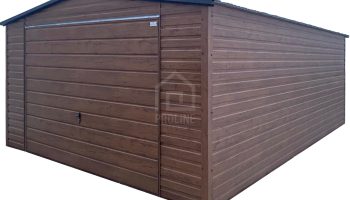 / Garaż blaszany 4x5m – brama uchylna – ciemny orzech – drewnopodobny – dach dwuspadowy PLG253