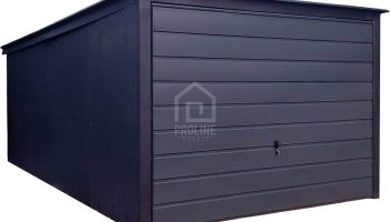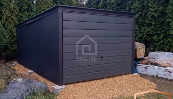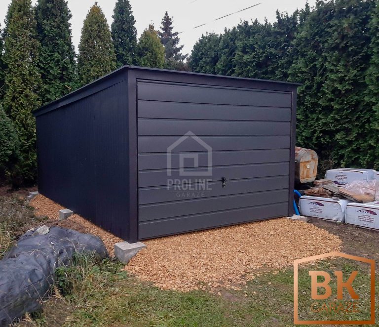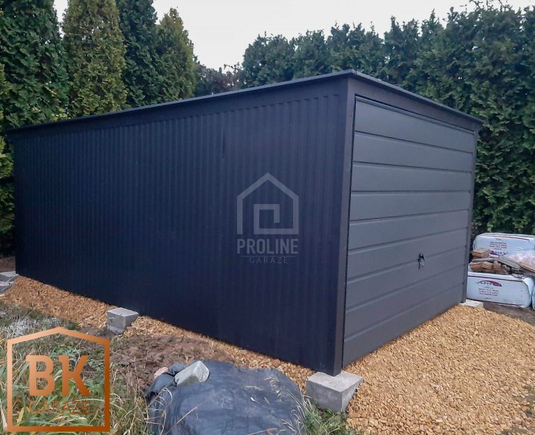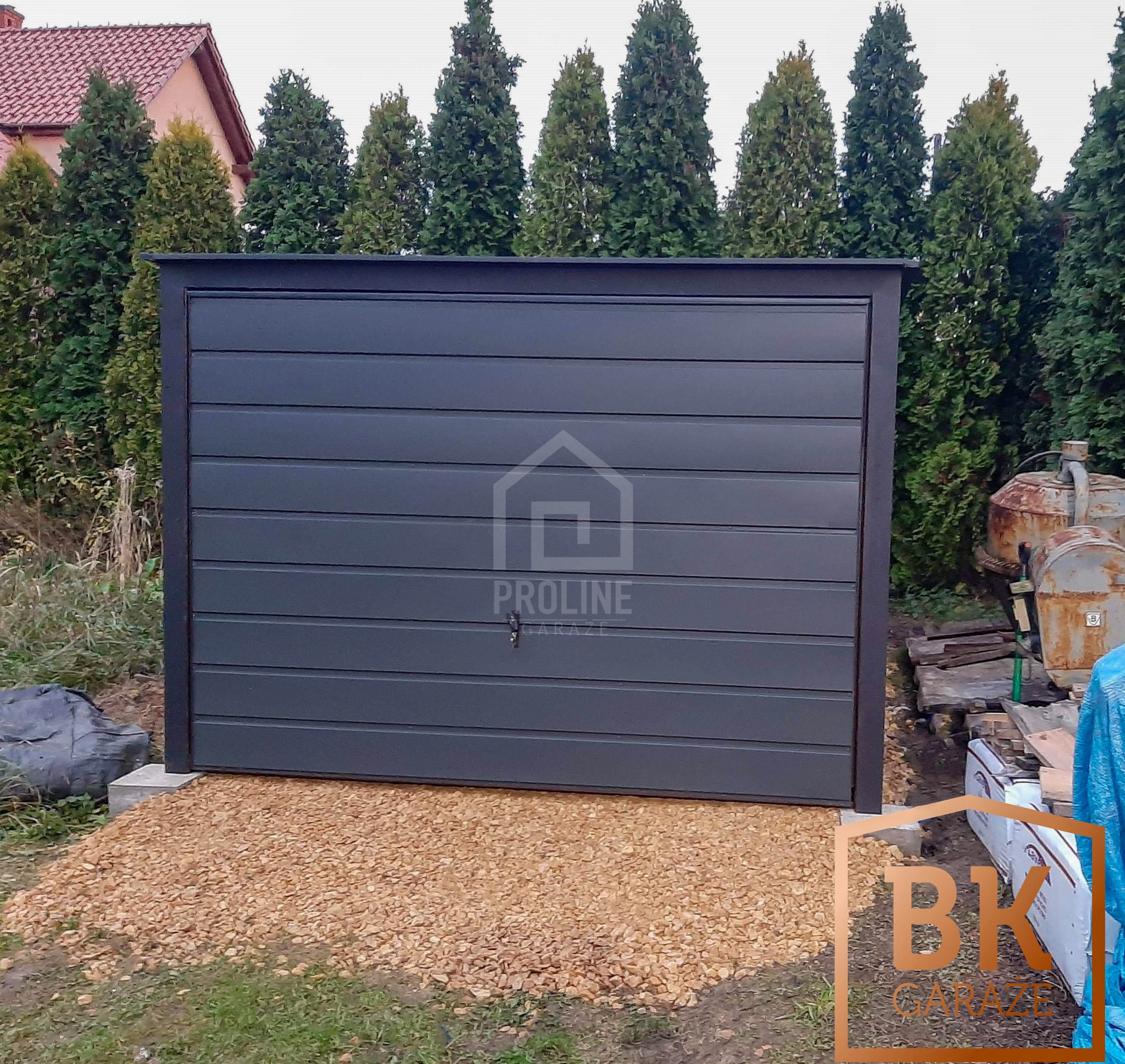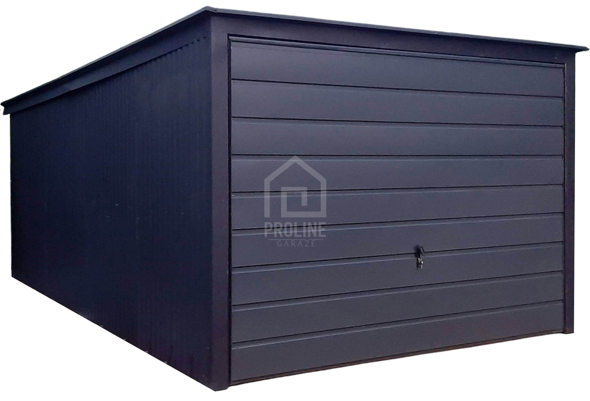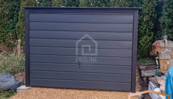 Garaż blaszany 3×5 – Brama uchylna – antracyt – dach spad w tył PLG123