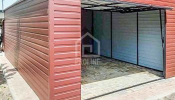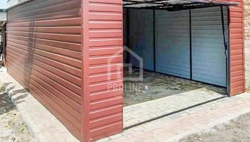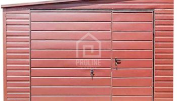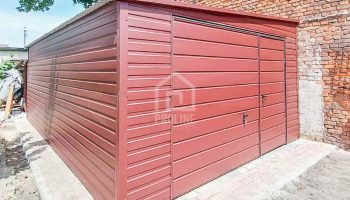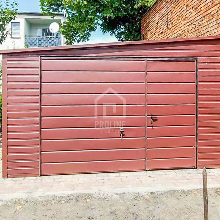 Garaż Blaszany 4,5x7m Brama uchylna – Ciemny Brąz – Dach spad w bok PLG144