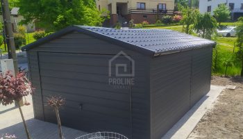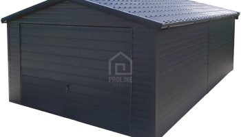 / Garaż blaszany 4x6m – Blachodachówka – Brama uchylna – antracyt – rynny – dach dwuspadowy PLG175